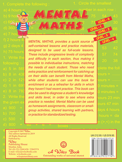 Description : Mental Maths provides a quick source of self-contained lessons and practice materials, designed to be used as full-scale lessons. These include progressive levels of complexity and difficulty in each section, thus making it possible to individualize instructions, matching the needs of each student. Those who need extra practice and reinforcement for catching up on their skills can benefit from Mental Maths, while other students can use this book for enrichment or as a refresher for skills in which they haven't had recent practice. This book can also be used to diagnose a student™sknowledge and skill level, in order to see where the extra practice is needed. Mental Maths can be used as homework assignments, classroom or small group activities, shared learning with partners, or practice for standardized testing.
