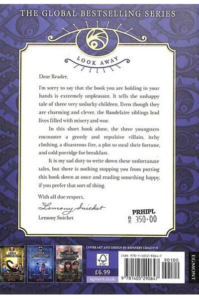 Description : 'The Bad Beginning' is the first novel in A Series of Unfortunate Events by Lemony Snicket which tells the melancholy tale of the Baudelaire children and their misfortunes. Violet, Klaus, and Sunny Baudelaire have to be the unluckiest children alive. They are orphaned by a dangerous fire and must now go live with their distant cousin: the villainous and conniving Count Olaf. A professional stage actor, Olaf only wants to adopt the children under the belief that he will inherit their vast inheritance which has been set aside until Violet comes of age. He is soon disillusioned and schemes to get his hands on that inheritance. He will do anything, including forcing Violet to marry him just to get it.