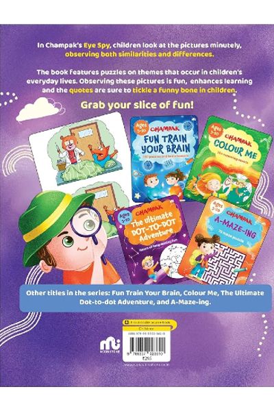 Description : In Champak’s Eye Spy, children look at the pictures minutely, observing both similarities and differences. The book features puzzles on themes that occur in children’s everyday lives. Observing these pictures is fun, enhances learning and the quotes are sure to tickle a funny bone in children. Grab your slice of fun!