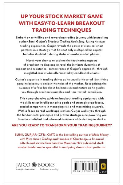 Description : Up your stock market game with easy-to-learn breakout trading techniques! Embark on a thrilling and rewarding trading journey with bestselling author Sunil Gurjar’s Breakout Trading Made Easy. Using his own trading experience, Gurjar reveals the power of classical chart patterns in a strategy that has not only multiplied his capital but also shielded it during static or erratic market phases. Here’s your chance to explore the fascinating aspects of breakout trading and unravel the intricate dynamics of support and resistance—cornerstones of Gurjar’s approach—through insightful case studies illuminated by candlestick charts. Gurjar’s expertise in trading shines as he unveils the art of identifying genuine breakouts amidst the noise of the market. Recognizing the nuances of a fake breakout becomes second nature as he guides you through practical examples and time-tested techniques. This comprehensive guide on breakout trading equips you with the skills to set intelligent price goals and strategic stop-losses, crucial components in managing risk and maximizing rewards. With a focus on real-world application, Gurjar walks you through the fundamental principles and proven strategies, empowering you to make confident and informed decisions while dealing in stocks. Are you ready to transform your trading journey?
