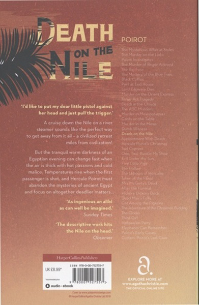 Description : Agatha Christie™smost exotic murder mystery! The tranquility of a cruise along the Nile is shattered by the discovery that Linnet Ridgeway has been shot through the head. She was young, stylish and beautiful, a girl who had everything until she lost her life. Hercule Poirot recalls an earlier outburst by a fellow passenger: I'd like to put my dear little pistol against her head and just press the trigger. Yet in this exotic setting nothing is ever quite what it seems.