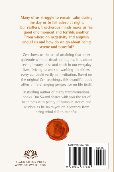 Description : Many of us struggle to remain calm during the day or to fall asleep at night. Our restless, treacherous minds make us feel good one moment and terrible another. From where do negativity and anguish engulf us and how do we go about being serene and peaceful? Zen shows us the art of attaining that inner quietude without rituals or dogma. It is about seeing beauty, bliss and truth in our everyday lives. Driving to work or washing the dishes, every act could easily be meditation. Based on the original Zen teachings, this beautiful book offers a life-changing perspective on life itself. Bestselling author of many transformational books, Om Swami shares with you the art of happiness with plenty of humour, stories and wisdom as he takes you on a journey from being mind full to mindful.