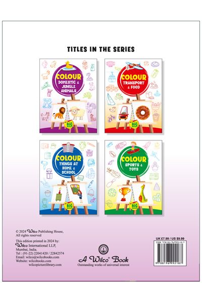 Description : This fun filled and engaging colouring book series from Wilco will keep your kids hooked for hours with all different types of pictures they will get to colour. These books, with easy to colour big images, will help them expand their creativity and enhance their imaginative power. This book contains the pictures of different animals that they see in jungles, zoo and also around their homes.