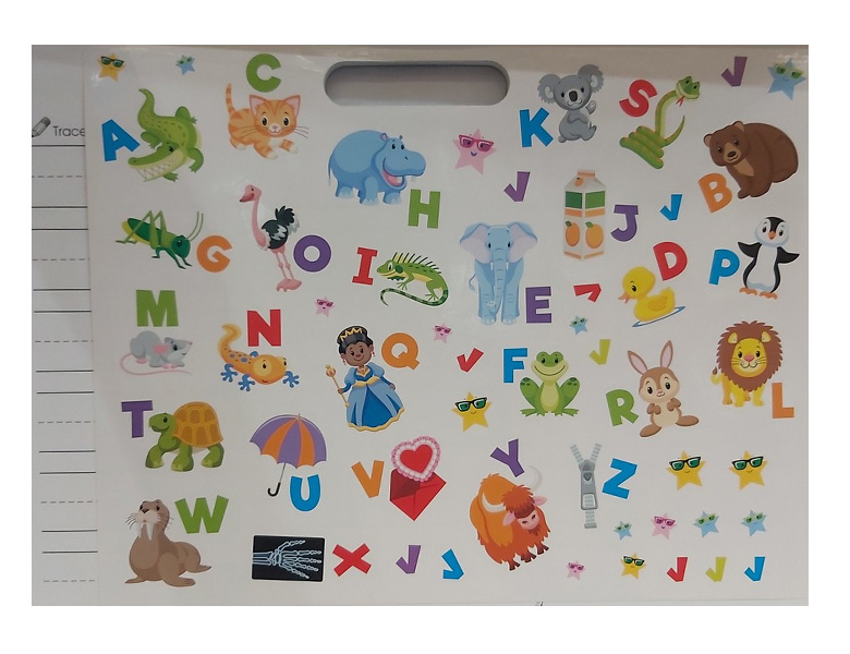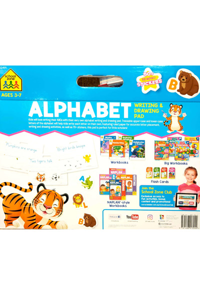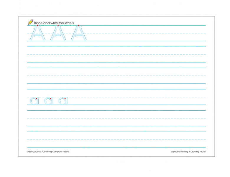 Description : Kids will love writing their ABC™swith their very own alphabet writing and drawing pad. Traceable upper-case and lower-case letters of the alphabet will help kids write each letter on their own. Featuring ruled paper for accurate letter placement, writing and drawing activities, as well as 70+ stickers, this pad is perfect for little scholars!