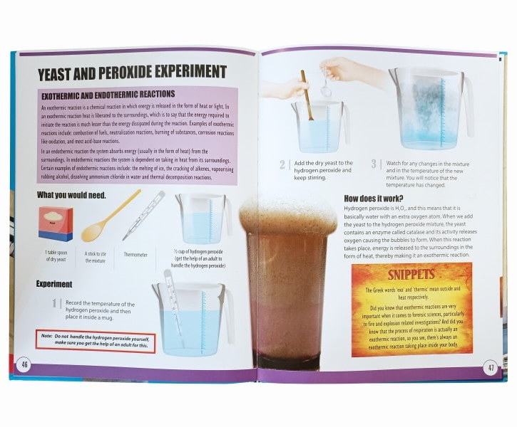 Description : Learn about magnetism with a magnet maze, discover how tall you are using your own feet, and find out about colour mixing with jelly! Jam-packed with fun and exciting experiments, which can easily be performed at home, this book is the perfect introduction to science for inquisitive readers age 5 and up. Children will love the book because it is hands-on and entertaining, and parents will love the book, too, because of its educational value. All of the experiments can be safely performed at home with readily available items found around the house and pantry. Because of the fun and appealing design, kids will want to start experimenting right away!