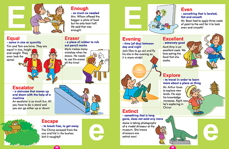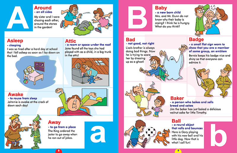 Description : This comprehensive compendium of My First Words & Picture Dictionary, will arm your child with the tools needed towards taking the first steps in exploring the English language. My First Words, designed in thematic format helps develop the recognition skills of words belonging to each particular group e.g, Animals, Food, Transport, Solar System, Human Body etc. The colourful pictures are great for initiating picture talks, sporting differences, learning opposites & many other related concepts which kindles the mind of a child to become aware, that all that he sees & experiences, can now be described with words, with which he can now express himself. The Picture Dictionary with colourful illustrations & easy to read definitions, is an important reference tool for children, parents & teachers. Words are defined along with illustrations & their usage in sentences to enhance the child™scognitive skills & their capacity to imagine & increase their vocabulary in everyday life. It is also designed to help children expand their basic language skills, vocabulary & learn grammatical skills with the usage of a word in a sentence.