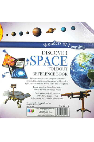 Description : Discover the wonders of space, our solar system, the galaxies and the universe. On a clear night you can see the moon, stars and even planets! Learn amazing facts about space in this foldout reference book! Each section unfolds to reveal extra-large pages, fun information and colourful illustrations.