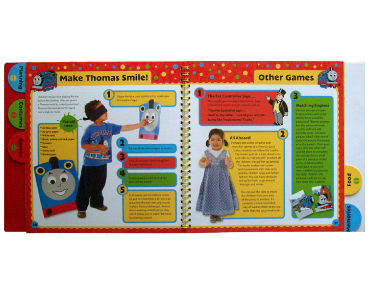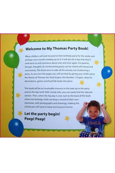 Description : From making invitations, decorations and goody bags to planning games, costumes and delicious party food, this fun-packed book has everything you need for your perfect Thomas-themed party. Beautifully packaged, with tabs to clearly mark each section of the book, and with a special log at the end for the child to fill in their own party memories.