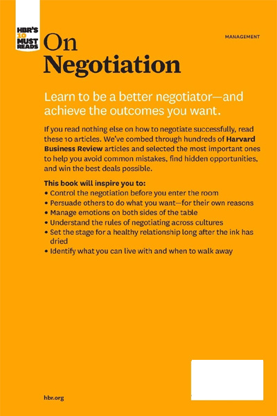 Description : Learn to be a better negotiator--and achieve the outcomes you want. If you read nothing else on how to negotiate successfully, read these 10 articles. We've combed through hundreds of Harvard Business Review articles and selected the most important ones to help you avoid common mistakes, find hidden opportunities, and win the best deals possible. This book will inspire you to: * Control the negotiation before you enter the room * Persuade others to do what you want--for their own reasons * Manage emotions on both sides of the table * Understand the rules of negotiating across cultures * Set the stage for a healthy relationship long after the ink has dried * Identify what you can live with and when to walk away