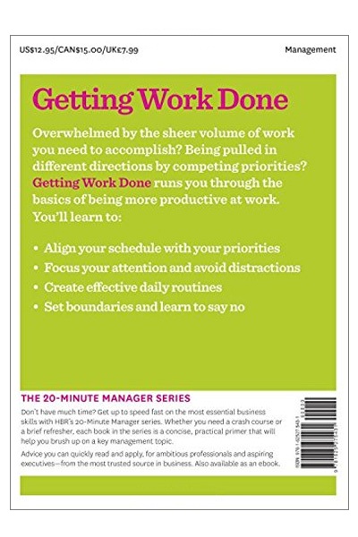 Description : Overwhelmed by the sheer volume of work you need to accomplish? Being pulled in different directions by competing priorities? Getting Work Done runs you through the basics of being more productive at work. You’ll learn to: * Align your schedule with your priorities * Focus your attention and avoid distractions * Create effective daily routines * Set boundaries and learn to say no