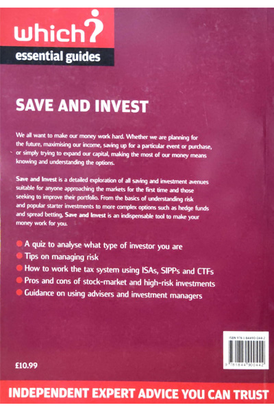 Description : Whether we're planning for the future, saving up for a particular event or purchase, or simply trying to expand our capital, we all want to make our money grow. Making the most of our money means knowing and understanding the options. 'Save and Invest' explores every avenue of the complex and occasionally obscure world of financial investments. Beginning with a discussion of the importance of both saving and investing for financial health, the guide introduces interest rates and their implications, the basics of understanding and spreading risk, inflation and protecting your assets, and suggests popular starter investments. The many types of savings accounts are closely analysed, including high street and internet accounts, ISA™sand ethical savings, before more complex investment options such as high-income bonds, hedge funds, venture capital trusts and spread betting are explored. Offering a thorough study of all aspects of investment, the handbook covers managing risk, protecting investments from tax, making sense of the stock market, investing in property, choosing a pension, and building a portfolio. Approaching the topic from an individual perspective, with a quiz to determine what kind of investor you are, 'Save and Invest' is an indispensable tool to make your money work for you.