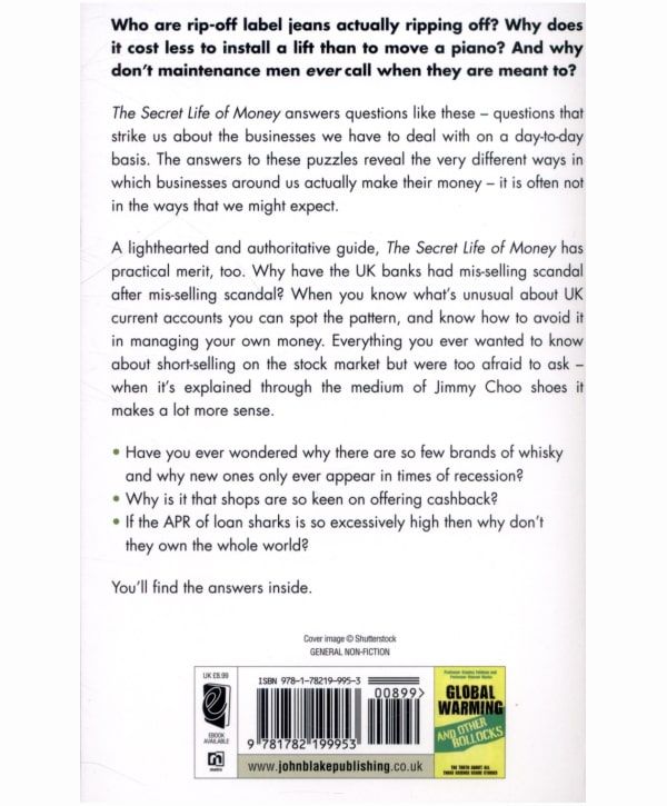Description : Who are rip off label jeans actually ripping off? Why does it cost less to install a lift than to move a piano? And why don't maintenance men ever call when they are meant to? The Secret Life of Money answers questions like these - questions that strike us about the businesses we have to deal with on a day-to-day basis. The answers to these puzzles reveal the very different ways in which businesses around us actually make their money - it is often not in the ways that we might expect. Have you ever wondered why there are so few brands of whisky and why new ones only ever appear in times of recession? Why is it that shops are so keen on offering cashback? If the APR of loan sharks is so excessively high then why don't they own the whole world? A lighthearted and authoritative guide, The Secret Life of Money has practical merit, too. Why have the UK banks had mis-selling scandal after mis-selling scandal? When you know what™sunusual about UK current accounts you can spot the pattern, and know how to avoid it in managing your own money. Everything you ever wanted to know about short selling on the stock market but were too afraid to ask - when it™sexplained through the medium of Jimmy Choo shoes it makes a lot more sense.