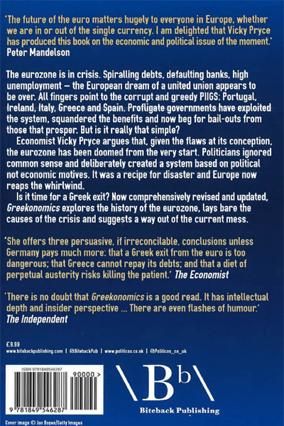 Description : Shortlisted for Spear™sBusiness Book of the Year Award 2013 The eurozone is in crisis. Spiralling debts, defaulting banks, high unemployment - the European dream of a united union appears to be over. All fingers point to the corrupt and greedy PIIGs: Portugal, Ireland, Italy, Greece and Spain. Profligate governments have exploited the system, squandered the benefits and now beg for bail-outs from those that prosper. But is it really that simple? Economist Vicky Pryce argues that, given the flaws at its conception, the eurozone has been doomed from the very start. Politicians ignored common sense and deliberately created a system based on political not economic motives. It was a recipe for disaster and Europe now reaps the whirlwind. Is it time for a Greek exit? Now comprehensively revised and updated, Greekonomics explores the history of the eurozone, lays bare the causes of the crisis and suggests a way out of the current mess.