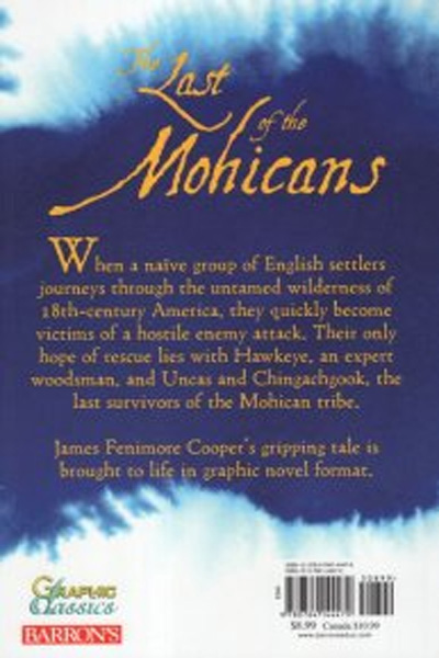 Description : Spanning the French and Indian war of the 18th century, and centering on the British province of New York, James Fenimore Cooper™sclassic epic about an ongoing struggle features bravery, compassion and ultimately tragedy. Forces at war, a brave rescue attempt and an untimely massacre converge to create a stunning masterpiece of classic fiction. Barron™sGraphic Classics offer easy-to-follow retellings of immortal literary works. They introduce elementary and secondary school students to many of our culture™sgreat plays, novels, and epic poems, and encourage boys and girls to discover the joy of reading the masterworks in their original form. Graphic Classics titles tell absorbing stories with high-quality colour illustrations complemented with short narrative sections and dialogue balloons that capture the spirit of the originals. They also present background material to help young readers understand when and why the literary work was originally written.