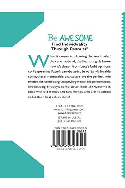 Description : Find Individuality Through Peanuts When it comes to showing the world what they are made of, the Peanuts girls know how it™sdone! From Lucy™sbold opinions to Peppermint Patty™scan-do attitude to Sally™slovable spirit, these memorable characters are the perfect role models for celebrating unique, larger-than-life personalities. Introducing Snoopy™sfierce sister, Belle, Be Awesome is filled with old friends and new friends who are not afraid to let their best selves shine!