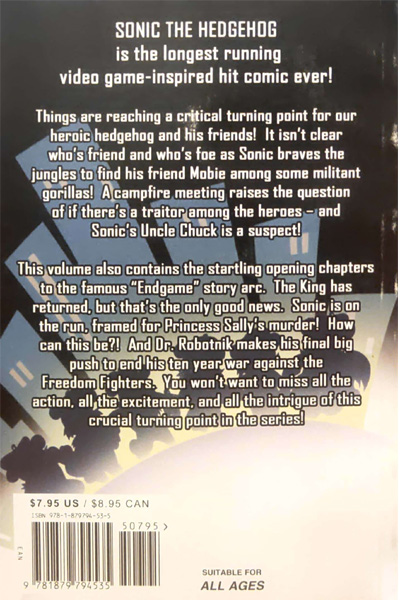 Description : Some of the most exciting stories in the Sonic-verse occurred on the epic road to issue #50: The controversial and classic Endgame Saga! In the latest volume of Sonic Archives, the series which reprints classic stories from the Sonic the Hedgehog comic book, fans can relive (or experience for the very first time) the tumultuous issues #45-48. With the King rescued but in dire condition, Knuckles must finish his quest to find the mystical Sword of Acorns, the only object capable of healing the King, before time runs out! With the recent betrayal by Sleuth Dawg, suspicion runs high in Knothole as yet another traitor to the Freedom Fighters strikes a deal with Robotnik! Hold onto your chilidogs as Sonic Archives delivers an exhilarating series of tales (no, tales, not Tails!) that will leave your heart racing at Super Sonic speed!
