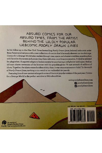 Description : Absurd comics for our absurd times, from the artist behind the wildly popular web comic Poorly Drawn Lines—the perfect gift for comic book fans! In his follow up to the New York Times bestselling Poorly Drawn Lines, beloved web comic artist Reza Farazmand returns with a collection of comics that hilariously skewers our modern age. ‘Comics for a Strange World’ takes readers through time, space, and alternate realities, reuniting fans with favourite characters and presenting them with even more bizarre scenarios. A child is arrested for plagiarism. A squirrel adapts to human society by purchasing a cell phone and a gun. And an old man shares memories of the Internet with his granddaughter (“A vast network of millions of idiots. Together, the idiots created endless shitty ideas. It was a true renaissance of shit.â€). In the world of Poorly Drawn Lines, nothing is too weird or too outlandish for parody.