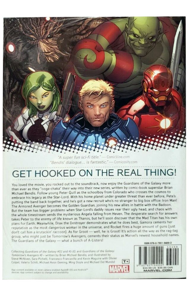 Description : Why has Earth suddenly become the most important planet in the galaxy? The Guardians of the Galaxy plan to find out! Star-Lord, Gamora, Drax, Rocket Raccoon, Groot - and the invincible Iron Man - embark on an explosive adventure! The secrets they discover will rattle readers for years to come! But while Earth deals with a brutal Badoon invasion, the Guardians' fate has been decided millions of miles away! Then, Heaven™smost fearsome angel comes for the Guardians! And when Gamora battles the mysterious Angela, the universe hangs in the balance! The Guardians find themselves at a crossroads when Thanos' master plan takes shape. Can Angela™spower help combat INFINITY ? And will Star-Lord betray the entire universe? The cosmic blockbuster hit begins here!