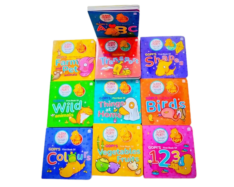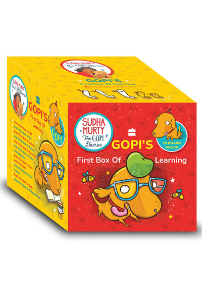 Description : Learn basic concepts with Gopi through the ten board books in this first box of learning! Based on Gopi the dog, from Sudha Murty™sGopi Diaries. 'Gopi has learnt a lot from me, and taught me so much since I became his Ajji. So I am absolutely delighted that young children like you will start your learning journey with Gopi as your naughty and wonderful companion.' - Sudha Murty, author of the bestselling Gopi Diaries series. The Gopi early learning range has been designed around Gopi, the popular dog from Sudha Murty™sbestselling Gopi series. From easy recognition to familiar bonding and attachment, character-based books draw children into exploring concepts, activities and learning in companionship with a character they love. This boxset includes: - Gopi™sFirst Book Of ABC - Gopi™sFirst Book Of 123 - Gopi™sFirst Book Of Shapes - Gopi™sFirst Book Of Colours - Gopi™sFirst Book Of Farm Animals And Pets - Gopi™sFirst Book Of Fruits And Vegetables - Gopi™sFirst Book Of Wild Animals - Gopi™sFirst Book Of Birds - Gopi™sFirst Book Of Transport - Gopi™sFirst Book Of Things At Home
