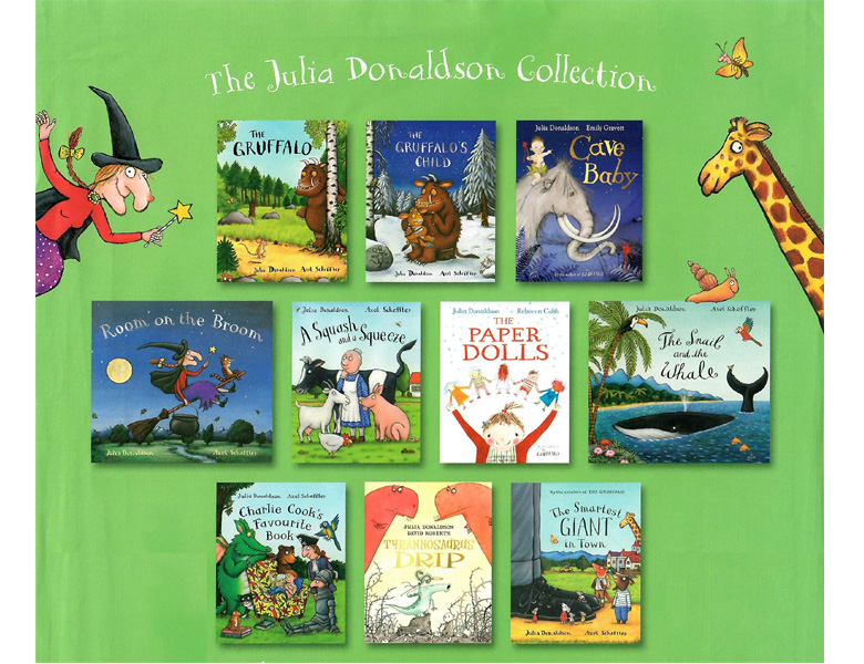 Description : The Gruffalo, The Gruffalo™sChild, Room on the Broom... When it comes to books for toddlers, Julia Donaldson can't be beaten and you'll find all these and more in this brilliant 10-book collection! Sure to quickly become bedtime favorites, our collection also includes Julia Donaldson stories that may not be as well known but are just as delightful. With flowing rhyming copy and illustrations from the likes of Axel Scheffler, Rebecca Cobb and Emily Gravett, we just know your toddlers will love The Snail and the Whale, The Paper Dolls and Cave Baby. Stories to be returned to time and time again and perfect for shared reading, you will not find these amazing picture books at a lower price - they're a must for any toddler you know! Titles in this collection (10) 1) The Gruffalo™sChild 2) Cave Baby 3) The Smartest Giant in Town 4) Tyrannosaurus Drip 5) The Paper Dolls 6) A Squash and a Squeeze 7) Room on the Broom 9) Charlie Cook™sFavourite Book 10) The Snail and the Whale
