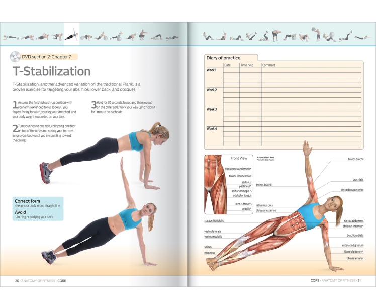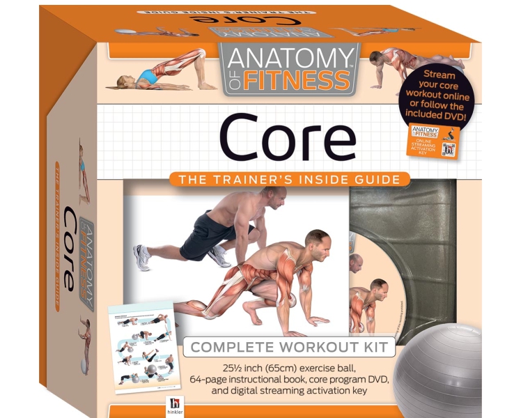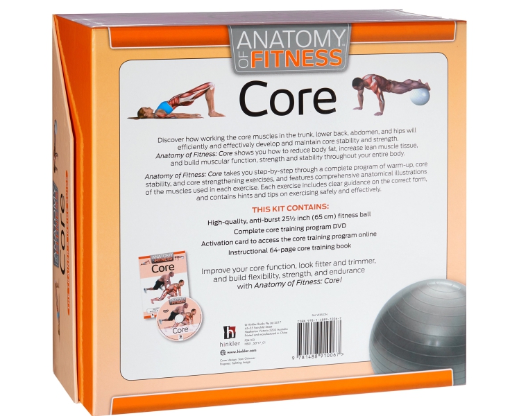 Description : Discover how working the core muscles in the trunk, lower back, abdomen, and hips will efficiently and effectively develop and maintain core stability and strength. Anatomy of Fitness: Core shows you how to reduce body fat, increase lean muscle tissue, and build muscular function, strength and stability throughout your entire body. Anatomy of Fitness: Core takes you step-by-step through a complete program of warm-up, core stability, and core strengthening exercises, and features comprehensive anatomical illustrations of the muscles used in each exercise. Each exercise includes clear guidance on the correct form, and contains hints and tips on exercising safely and effectively. This kit contains: • High-quality, anti-burst 251/2 inch (65 cm) fitness ball • Complete core training program DVD • Activation card to access the core training program online • Instructional 64-page core training book Improve your core function, look fitter and trimmer, and build flexibility, strength, and endurance with Anatomy of Fitness: Core!