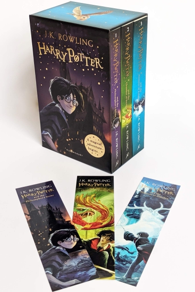 Description : The essential introduction to the world of Harry Potter: three magical adventures in one beautiful box set. Every great story has a great beginning. From the moment Harry Potter is deposited on the doorstep of number four, Privet Drive, with a swish of Albus Dumbledore™scloak and the words 'Good luck, Harry', J.K. Rowling™sirresistible storytelling pulls readers into an unforgettable, magical adventure. Harry Potter is a milestone in every child™sreading journey and this gorgeous, collectable three-book set is the perfect introduction for new readers and young Muggles everywhere. This beautifully produced box set contains Harry Potter and the Philosopher™sStone, Harry Potter and the Chamber of Secrets and Harry Potter and the Prisoner of Azkaban, with enchanting cover art by Jonny Duddle - plus three gorgeous, colourful bookmarks with memorable quotes from favourite Harry Potter characters!