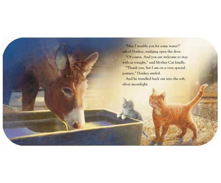 Description : Mummy Cat and Little Kitten are cuddled up in their barn on a silent winter™snight. One by one they are visited by animals travelling to see a stunning bright star in the sky. The cats soon learn that it is a very special night indeed. So they set off to see what the shining star behold.