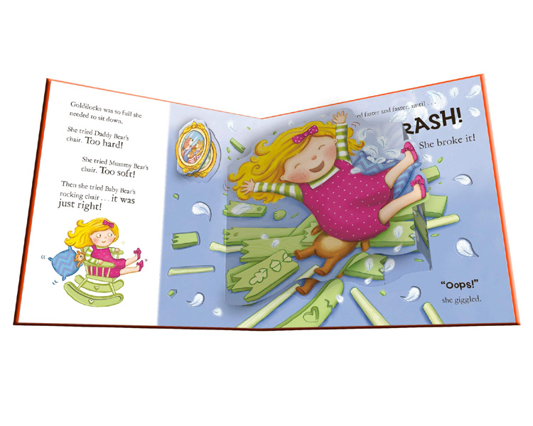 Description : When Goldilocks finds an empty cottage, she can’t resist sneaking in and eating the porridge… What will happen when the bears get back? A delightfully delicious retelling of a classic tale, packed with giant pop-ups and lots of flaps!
