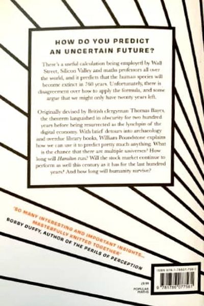 Description : There’s a useful calculation being used by Wall Street, Silicon Valley and math’s professors all over the world, and it predicts that the human race has only 760 years left to live. Using its formula, we can look at the world around us with new eyes. What is the chance that there are multiple universes? How long will Hamilton run? Will the US stock market continue to perform as well this century as it has for the last hundred years? And are we all doomed?
