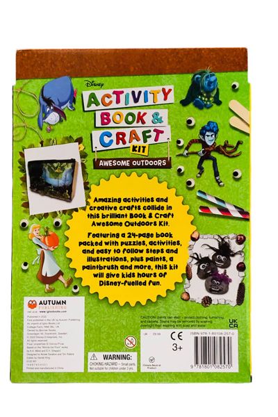 Description : Explore the great outdoors with the 'Disney: Activity Book & Craft Kit Awesome Outdoors,' -- a perfect blend of fun activities and creative crafting inspired by beloved Disney characters. Packed with engaging puzzles, colouring pages, and exciting games, this activity book offers endless entertainment for children of all ages. Plus, with a bonus craft kit included, young adventurers can bring their favourite Disney characters to life through exciting DIY projects. From making nature-inspired crafts to solving outdoor-themed puzzles, this kit promises hours of imaginative play and creative exploration. Ideal for family adventures or rainy days indoors, the 'Disney: Activity Book & Craft Kit Awesome Outdoors' is a must-have for every young Disney fan.