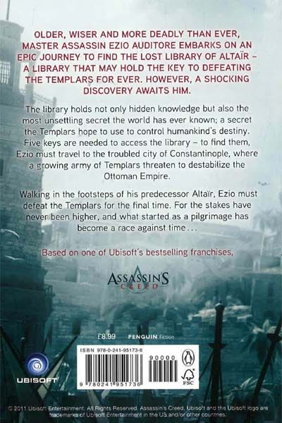 Description : Assassin™sCreed: Revelations is the thrilling novelisation by Oliver Bowden based on the game series. Older, wiser and more deadly than ever, Master Assassin Ezio Auditore embarks on an epic journey to find the lost library of Altair - a library that may hold the key to defeating the Templars forever. However, a shocking discovery awaits him. The library holds no only a hidden knowledge but also the most unsettling secret the world has ever known; a secret the Templars hope to use to control humankind™sdestiny. Five keys are needed to access the library - to find them, Ezio must travel to the troubled city of Constantinople, where a growing army of Templars threaten to estabalize the Ottoman Empire. Walking in the footsteps of his predecessor, Altair, Ezio must defeat the Templars for the final time for the stakes have never been higher and what started as a pilgrimage has become a race against time... Assassin™sCreed: Revelations is based on the phenomenally successful gaming series. Fans of the game will love these stories.
