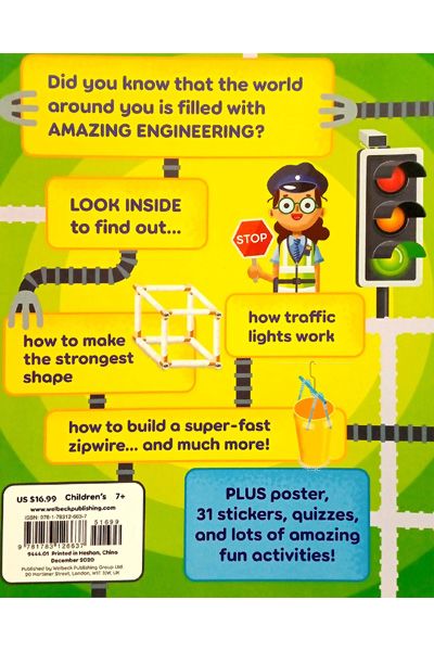 Description : Did you know that the world around you is filled with amazing engineering? Look inside to find out: - How to make the strongest shape - How traffic lights work - How to build a super-fast zipwire ..... and much more! Includes a poster, 31 stickers, quizzes, and lots of amazing activities!