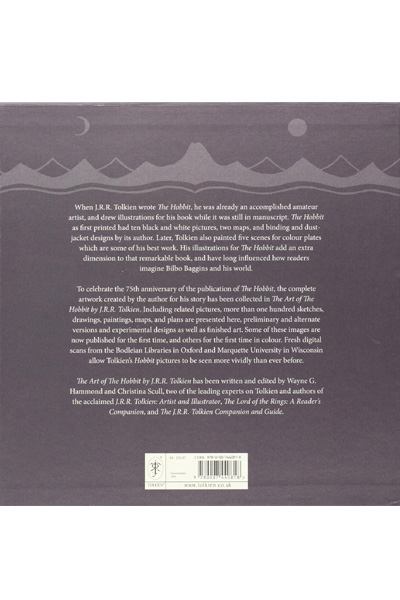 Description : A sumptuous full colour art book containing the complete collection of more than 100 sketches, drawings, paintings and maps created by J.R.R. Tolkien for The Hobbit. When J.R.R. Tolkien wrote The Hobbit, he was already an accomplished amateur artist, and drew illustrations for his book while it was still in manuscript. The Hobbit as first printed had ten black and white pictures, two maps, and binding and dust-jacket designs by its author. Later, Tolkien also painted five scenes for colour plates which are some of his best work. His illustrations for The Hobbit add an extra dimension to that remarkable book, and have long influenced how readers imagine Bilbo Baggins and his world. The Art of The Hobbit by J.R.R. Tolkien is the complete collection of the artwork created by the author for his story. Including related pictures, more than one hundred sketches, drawings, paintings, maps, and plans are presented here, preliminary and alternate versions and experimental designs as well as finished art. Using fresh digital scans from the Bodleian Libraries in Oxford and Marquette University in Wisconsin, Tolkien’s Hobbit pictures can be seen more vividly than ever before. Wayne G. Hammond and Christina Scull, two of the world’s leading Tolkien scholars, have edited the book and provide an expert introduction and comments. Readers who have enjoyed The Art of The Lord of the Rings by J.R.R. Tolkien will find much of interest also in The Art of The Hobbit.