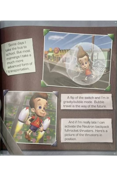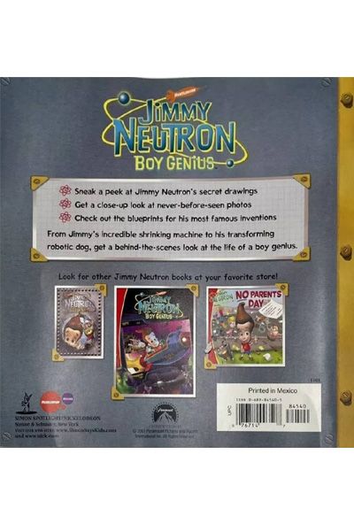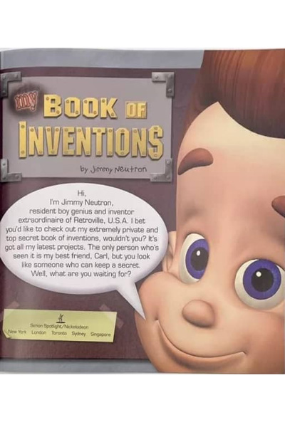 Description : My Book of Inventions is a book based on the Jimmy Neutron, Boy Genius movie. As the title suggests, it is a book narrated by Jimmy Neutron, in which he shows off his inventions. Aspiring inventors can sneak a peek at Jimmy Neutron™stop secret documents, blueprints, notes, and sketches of his most famous inventions. • Sneak a peek at Jimmy Neutron™ssecret drawings • Get a close-up look at never-before-seen photos • Check out the blueprints for his most famous inventions From Jimmy™sincredible shrinking machine to his transforming robotic dog, get a behind-the scenes look at the life of a boy genius.