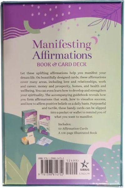 Description : Use the power of manifestation to create your dream life with this essential kit. Inside this beautiful gift box you will find a guidebook on how to manifest effectively using the law of attraction, as well as 50 affirmation cards which are a powerful and empowering tool for making your dreams reality. Use the cards to address any problems or obstacles that you may have in life, including: • Love and relationships • Work and career • Money and prosperity • Health and wellbeing • Developing spirituality. There are a wealth of ways in which to use the cards, as well as information on the principles of manifesting in general. Learn about vision boards and affirming positive beliefs on a daily basis, as well as how to ensure you get out of your own way when attempting to bring about lasting change.