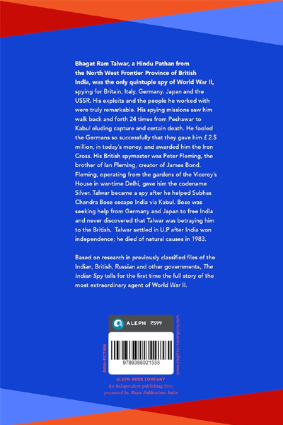Description : Bhagat Ram Talwar, a Hindu Pathan from the Northwest Frontier Province of British India, was the only quintuple spy of World War II, spying for Britain, Italy, Germany, Japan and the USSR. His exploits and the people he worked with were truly remarkable. His spying missions saw him walk back and forth 24 times from Peshawar to Kabul eluding capture and certain death. He fooled the Germans so successfully that they gave him £ 2.5 million, in today’s money, and awarded him the Iron Cross. His British spymaster was Peter Fleming, the brother of Ian Fleming, creator of James Bond. Fleming, operating from the gardens of the Viceroy’s House in wartime Delhi, gave him the code name Silver. Talwar became a spy after he helped Subhas Chandra Bose escape India via Kabul. Bose was seeking help from Germany and Japan to free India and never discovered that Talwar was betraying him to the British. Talwar settled in UP after India won independence; he died of natural causes in 1983. Based on research in previously classified files of the Indian, British, Russian and other governments, The Indian Spy tells for the first time the full story of the most extraordinary agent of World War II.