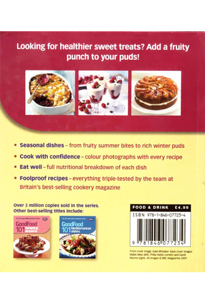 Description : We all know that fresh fruit is good for us. It™sfull of vitamins, high in fibre and low in calories, but it™snot always the first thing we turn to for an after-dinner dessert or sweet treat! In 101 Fruity Puds, the Good Food team has collected 101 fantastic fruit recipes, from refreshing and healthy to wickedly indulgent. Including cakes, pastries, roulades, cheesecakes, salads, sorbets, gateaux, meringues and fools - this compact cookbook celebrates the versatility of fruit. These tried-and-tested recipes from Britain™sbest-selling cookery magazine have been chosen to help even the busiest people enjoy delicious, home-made desserts. With step-by-step instruction, nutritional breakdowns and full-colour photography to accompany each recipe, you can cook with complete confidence.