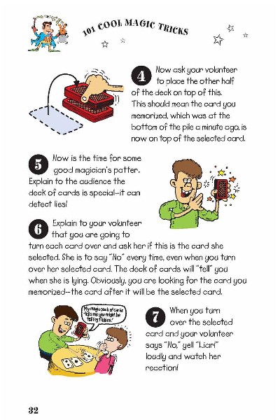 Description : Want to learn 101 of the coolest magic tricks? You'll be able to dazzle your friends with diabolically clever card tricks and confuse them with cunning coin conundrums. Want to make objects appear and disappear? Then check out the classic conjuring and riveting ring and rope tricks - they'll have your friends in knots! Have you always wanted to read minds? Let us show you how with masterly mental magic. Open 101 Cool Magic Tricks and learn the secrets of magic! This 208-page paperback book contains step-by-step instructions for 101 magic tricks, and coloured illustrations throughout.