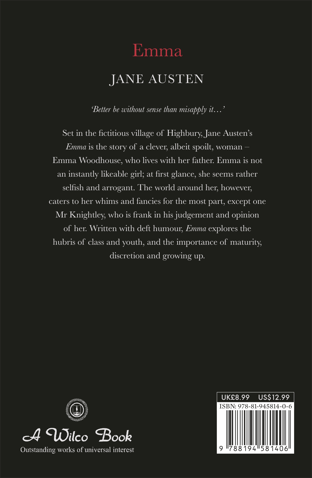 Description : ‘Better be without sense than misapply it…’ Set in the fictitious village of Highbury, Jane Austen’s Emma is the story of a clever, albeit spoilt, woman – Emma Woodhouse, who lives with her father. Emma is not an instantly likeable girl; at first glance, she seems rather selfish and arrogant. The world around her, however, caters to her whims and fancies for the most part, except one Mr. Knightley, who is frank in his judgement and opinion of her. Written with deft humour, Emma explores the hubris of class and youth, and the importance of maturity, discretion and growing up.