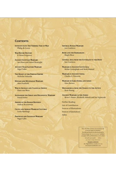Description : A global history of ancient warfare, covering Egypt, the Near East, Greece, Rome, Central Asia, India, China, Korea, Japan, and the Americas. In this new survey of ancient warfare, a group of distinguished historians and archaeologists discusses major battles and wars from around the world. The book ranges in time from 8000 BC and the earliest evidence of warfare in northern Iraq to the armies of the Aztecs and Incas half a millennium ago, and includes Alexander the Great™striumphant campaigns against Persia in the fourth century BC, Caesar™sGallic Wars, the Han Chinese defeat of the nomadic Xiongnu horsemen, and the Inca ruler Atahualpa™slast stand against Pizarro. The authors combine descriptions of the course of military events with expert analyses and explanations of the underlying social, economic, and cultural factors that shaped ancient warfare. Their essays survey the evolution of armies, tactics, and military equipment, from the strategic mastery evident in an early Chinese treatise on war by Sunzi to the rise of the Greek hoplite warrior and the development of swords and armor in ancient Japan. Special features cover key battles such as Qadesh, Issus, and Cannae; weaponry from shields to artillery; and visual resources such as Trajan™sColumn and the Terracotta Army. The rich illustrative material includes photographs, drawings, and specially commissioned 3-D battle reconstructions, maps, and plans. 351 illustrations, 150 in colour.