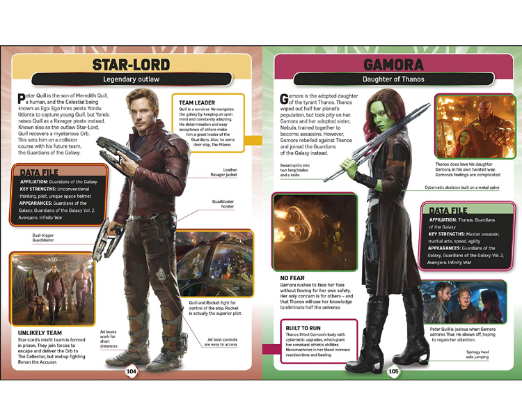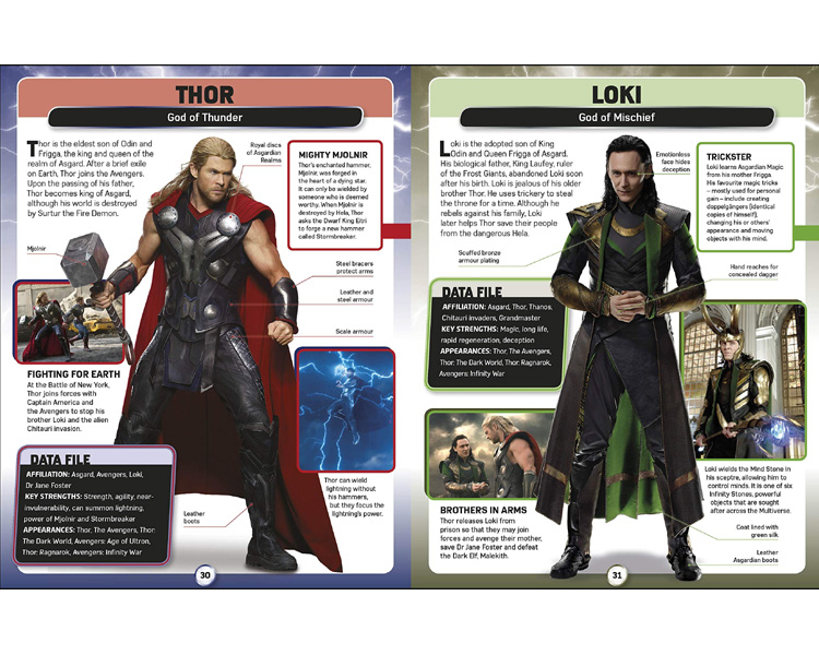 Description : The definitive guide to the heroes and villains of the Marvel movies (and everyone in between!) Learn the facts, figures, super-powers and origins of your favourite characters from the Marvel Cinematic Universe (MCU). From the Avengers and Ant-Man to Black Panther and Doctor Strange, this book spans over a decade of action-packed Marvel Studios movie releases. Filled with interesting facts and key information, whether your favourite hero is Captain America, Black Widow, Thor, The Wasp, Iron Man or Gamora, you'll be able to find out all about their story, super-powers, weapons, and much more. It isn't all heroes though; this book includes powerful villains and their followers, sinister spies, brave soldiers, and even ordinary people who find themselves caught up in epic battles! Whatever it is that you want to know, Marvel Studios: Character Encyclopedia will make you an instant Marvel Studios expert. Wondering what Thor™shammer is called, or where Vision came from? How Iron Man builds his suits, or who Thanos is? Then this is the book for you!