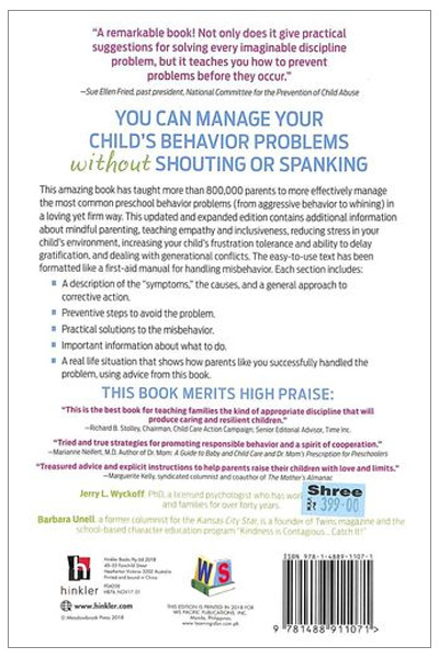 Description : You can manage your child™sbehaviour problems without shouting or spanking. This amazing book has taught more than 800,000 parents to more effectively manage the most common preschool behaviour problems (from aggressive behaviour to whining) in a loving yet firm way. This updated and expanded edition contains additional information about mindful parenting, teaching empathy and inclusiveness, reducing stress in your child™senvironment, increasing your child™sfrustration tolerance and ability to delay gratification, and dealing with generational conflicts. The easy-to-use text has been formatted like a first-aid manual for handling Misbehaviour. Each section includes: - a description of the symptoms, the causes, and a general approach to corrective action - Preventive steps to avoid the problem - Practical solutions to the misbehaviour - Important information about what to do - A real life situation that shows how parents like you successfully handled the problem, using advice from this book