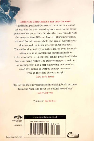 Description : Inside the Third Reich is not only the most significant personal German account to come out of the war but the most revealing document on the Hitler phenomenon yet written. It takes the reader inside Nazi Germany on four different levels: Hitler™sinner circle, National Socialism as a whole, the area of wartime production and the inner struggle of Albert Speer. The author does not try to make excuses, even by implication, and is unrelenting toward himself and his associates ... Speer™sfull-length portrait of Hitler has unnerving reality. The Führer emerges as neither an incompetent nor a carpet-gnawing madman but as an evil genius of warped conceits endowed with an ineffable personal magic Speer, the Minister of Armaments and War Production under Hitler, the man who had kept Germany armed and the war machine running even after Hitler™smystique had faded, takes a brutally honest look at his role in the war effort, giving readers a complete view of the inside of the Nazi state.