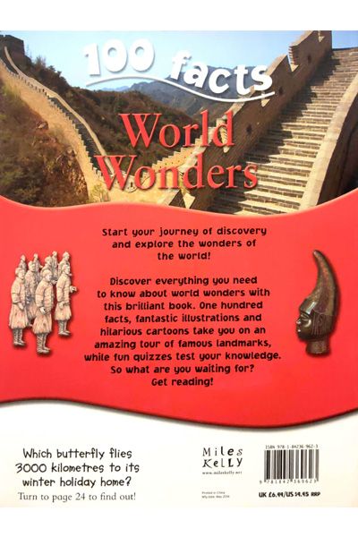 Description : Start your journey of discovery and explore the wonders of the world! Discover everything you need to know about world wonders with this brilliant book. One hundred facts, fantastic illustrations, and hilarious cartoons take you on an amazing tour of famous landmarks, while fun quizzes test your knowledge. Each of these exciting titles is crammed with 100 essential facts. Detailed illustrations encourage even the most reluctant of readers to become absorbed within each fascinating world of information. Quizzes are featured to test knowledge, as well as fun projects to get involved in.