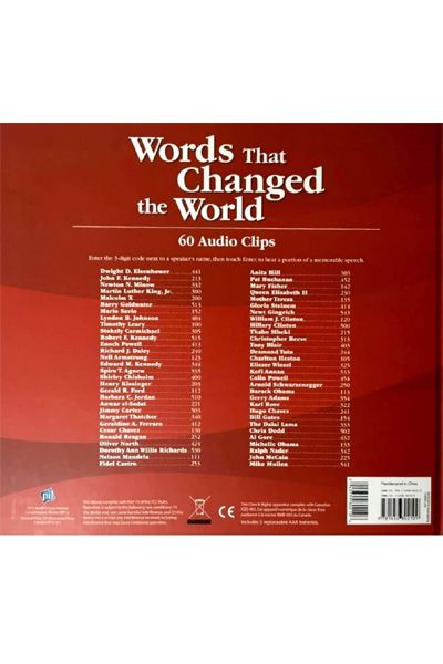 Description : Speeches can incite, inspire, exhort, accuse, exonerate, illuminate, energize, and instruct. While newer forms of communication seem ever more impersonal, the spoken word provides a human connection rich with emotional nuance and individual expression. Words That Changed the World contains not only written descriptions of the contexts for 60 of the greatest public speeches of the past half-century; not only authentic photographs of the speechmakers; but also audio recordings of key passages from those speeches. Words That Changed the World has an attached sound module with a numeric keypad and volume control. Each great speech excerpt in the book has a three-digit numeric code. To hear the speech excerpt, enter the code. The book presents 25 minutes total audio time, including excerpts from these great speeches: * Martin Luther King, Jr.™sI Have A Dream. * Timothy Leary encouraging his followers to Turn On, Tune In, Drop Out. * Egyptian President Anwar Sadat™saddress to the Israeli parliament in 1977. * Ronald Reagan addressing the United States after the space shuttle Challenger tragedy. * Fidel Castro, Anita Hill, Nelson Mandela, Charlton Heston, Karl Rove, Mother Theresa, John F. Kennedy, and Barack Obama on topics ranging from war and peace, hope and despair, and the full sweep of 50 incredible years.