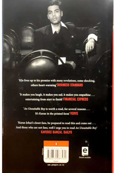 Description : Karan Johar is synonymous with success, panache, quick wit, and outspokenness, which sometimes inadvertently creates controversy and makes headlines. KJO, as he is popularly called, has been a much-loved Bollywood film director, producer, actor, and discoverer of new talents. With his flagship Dharma Production, he has constantly challenged the norms, written and rewritten rules, and set trends. But, who is the man behind the icon that we all know? Baring all for the first time in his autobiography, An Unsuitable Boy, KJO reminisces about his childhood, the influence of his Sindhi mother and Punjabi father, obsession with Bollywood, foray into films, friendships with Aditya Chopra, SRK and Kajol, his love life, the AIB Roast, and much more. In his trademark frank style, he talks about the ever-changing face of Indian cinema, challenges and learning, as well as friendships and rivalries in the industry. Honest, heart-warming and insightful, An Unsuitable Boy is both the story of the life of an exceptional film-maker at the peak of his powers and of an equally extraordinary human being who shows you how to survive and succeed in life.