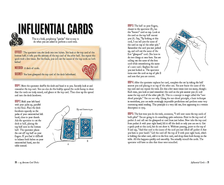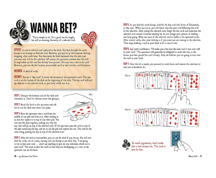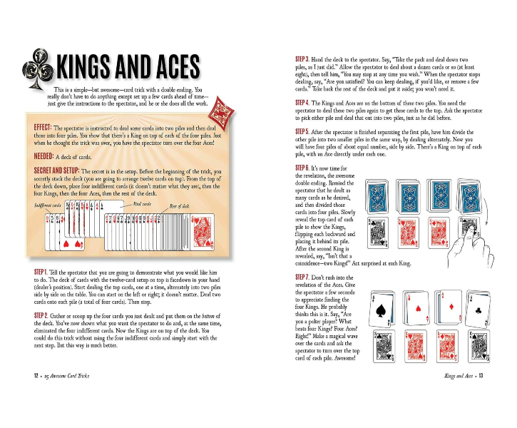 Description : Awesome card tricks that work like magic! Have you ever wanted to fascinate your friends with illusions? Developed by John Railing, one of the country’s top close-up magicians, this kit will help you learn twenty-five awesome card tricks. The paperback instruction book offers easy-to-follow directions for tricks like Card in a Dream, Mixed Up Aces, Follow the Leader, Kings and Aces, and more! A deck of 54 cards is also included—two of which are trick cards! With a little practice, you can enchant friends and family by performing the card wizardry learned with this kit.
