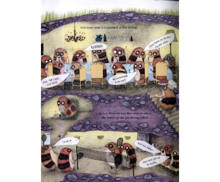 Description : The Society of Distinguished Lemmings enjoy the finer things in life, and aim to be distinguished in everything they do. So when the lemmings meet a bear, they are faced with a great challenge: can they transform this wild animal into a member of their society? A hilarious and quirky picture book about overcoming differences and being distinguished... but differently!