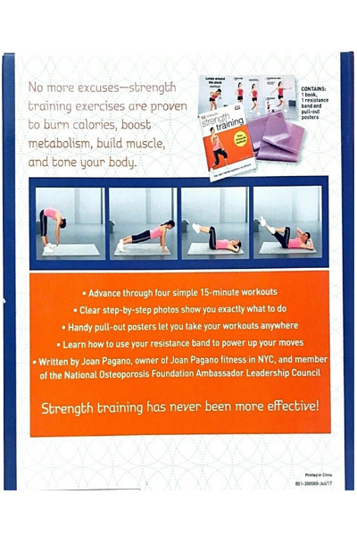 Description : No more excuses - strength training exercises are proven to burn calories, boost metabolism, build muscle, and tone your body. Discover the life-changing power of strength training with four beginner-friendly workouts. - Advance through four simple 15-minute workouts - Clear step-by-step photos show you exactly what to do - Handy pull-out posters let you take your workouts anywhere - Learn how to use your resistance band to power up your moves Written by Joan Pagano, owner of Joan Pagano Fitness in NYC, and member of the National Osteoporosis Foundation Ambassador Leadership Council. This package contains: - 1 book - 1 resistance band - pull-out posters Strength training has never been more effective!