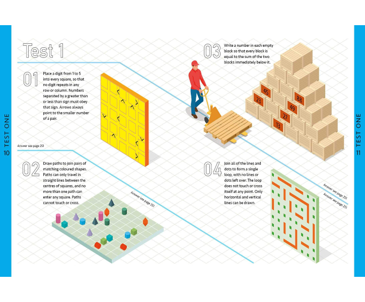 Description : Put your mind to work with the more than 400 brain-busting puzzles in this book! Modelled after questions on real IQ tests, the puzzles in Mind Works will test your mental mettle and push your brain to think faster and smarter. Quizzes include topics such as logical deduction, spatial reasoning, conceptual thinking, concentration, and many more. So put on your thinking cap and get started! More than 400 puzzles await!